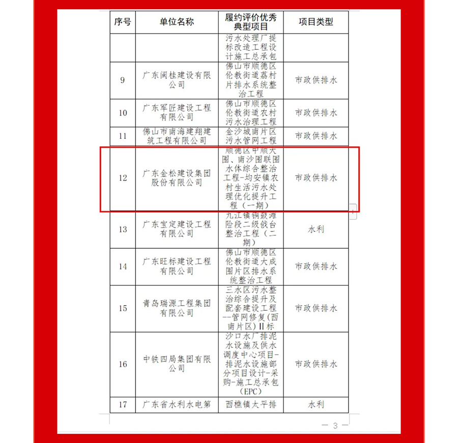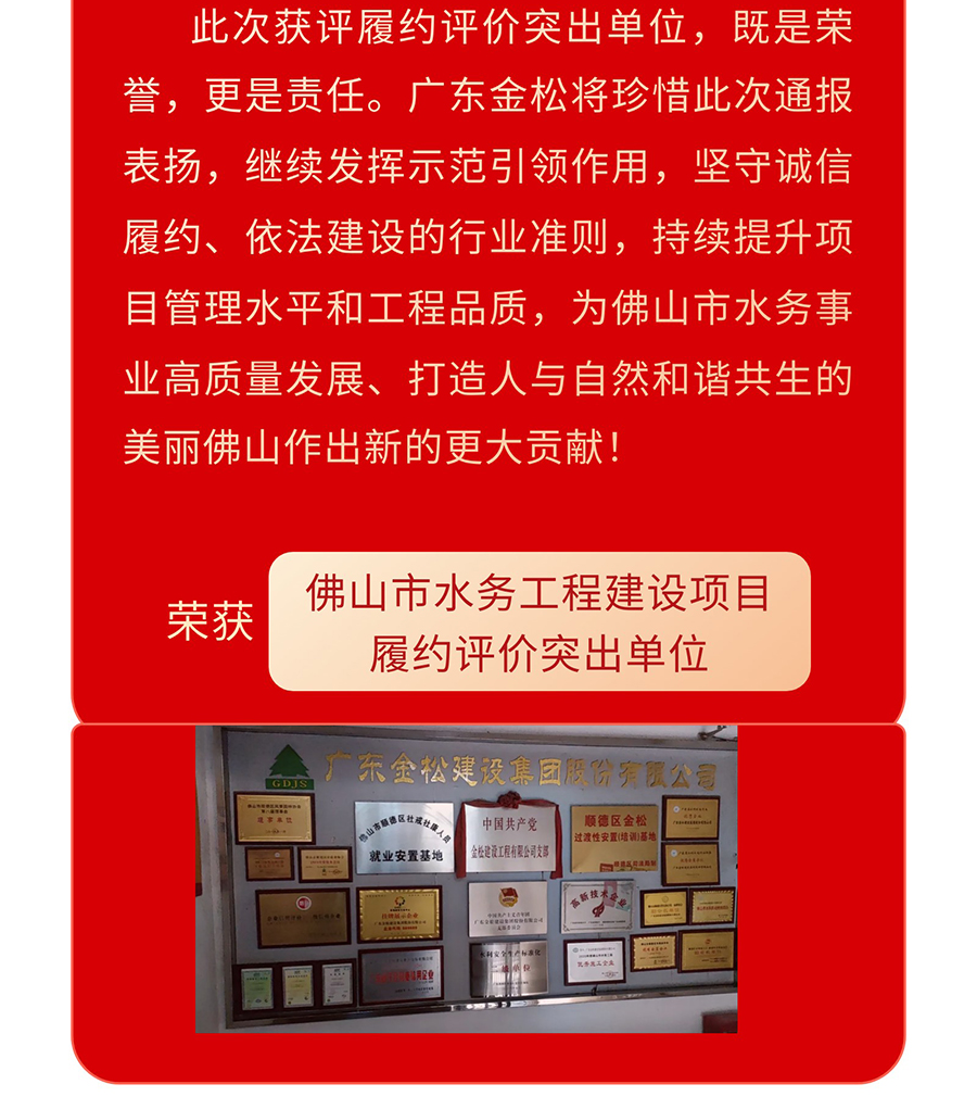 喜报 | 热烈祝贺广东金松建设集团被评为2024年度佛山市水务工程建设项目履约评价突出单位